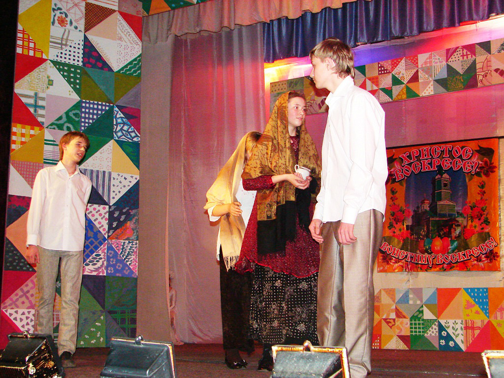 С пасхальными поздравлениями старшая группа «Светлячков» приняла участие в концерте «Пасхальный перезвон», организованном Михайло-Архангельским храмом. На сцене Рубцовского драматического театра ребята показали сценку на стихи «Спит Сион и дремлет злоба».