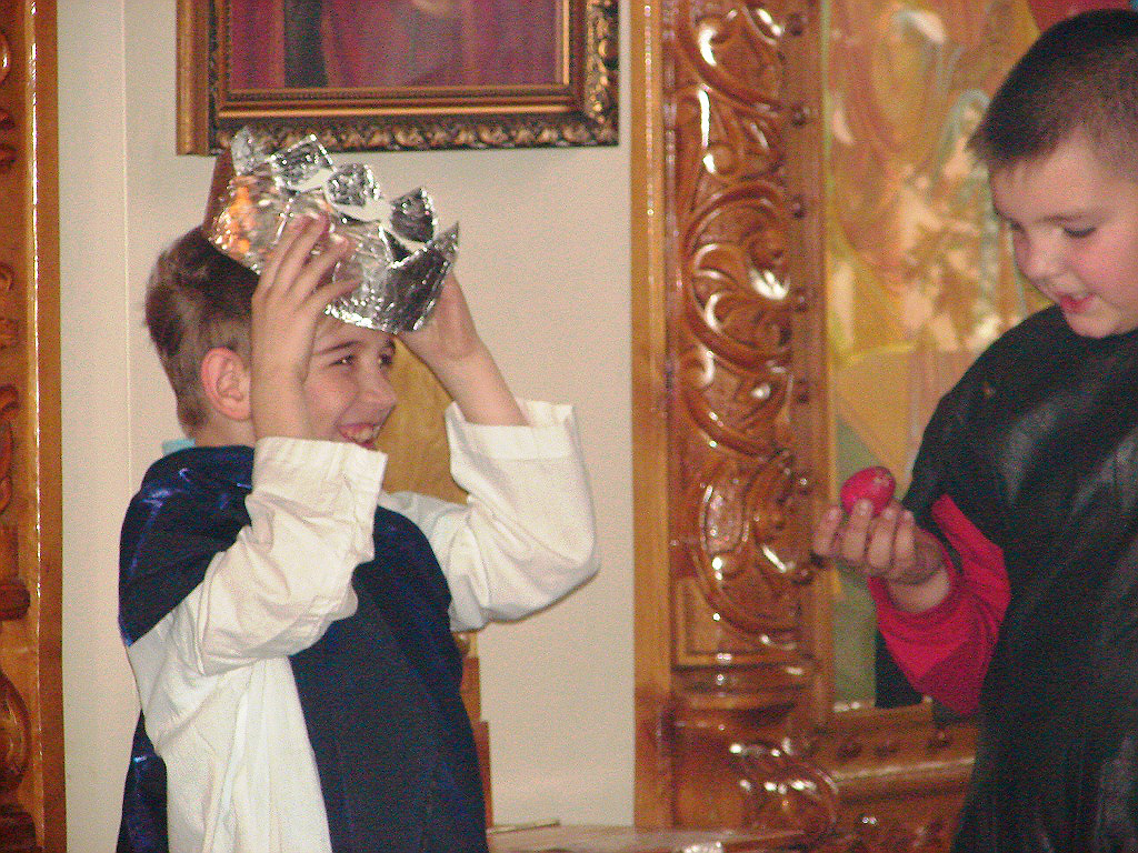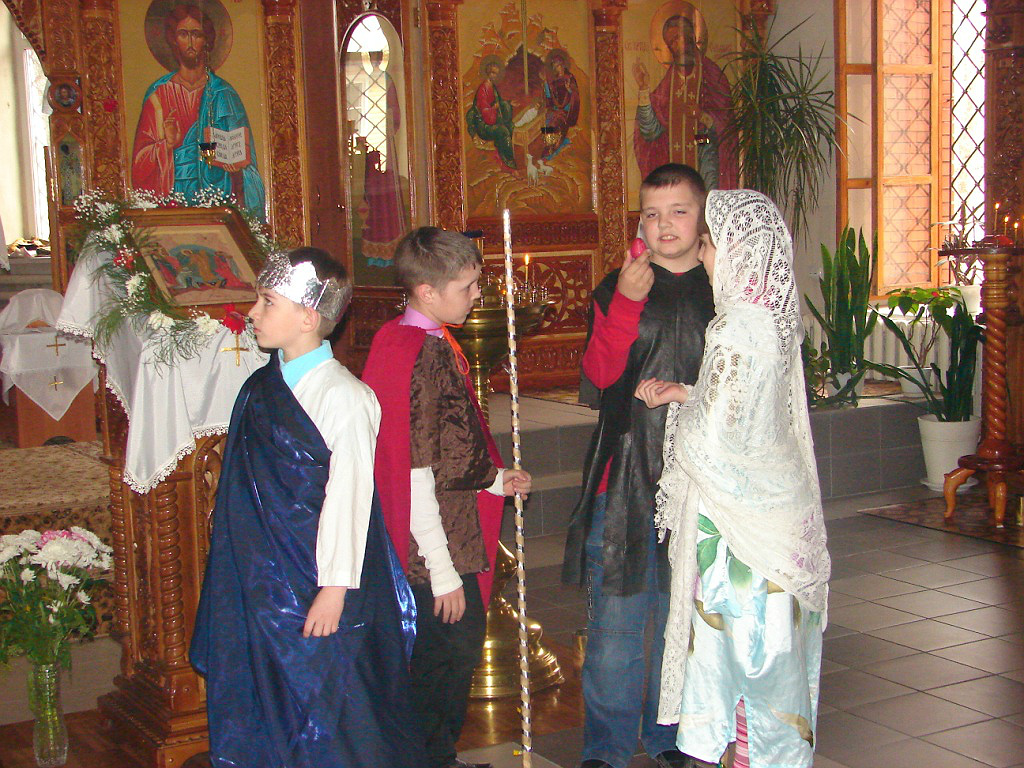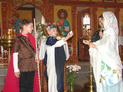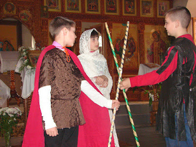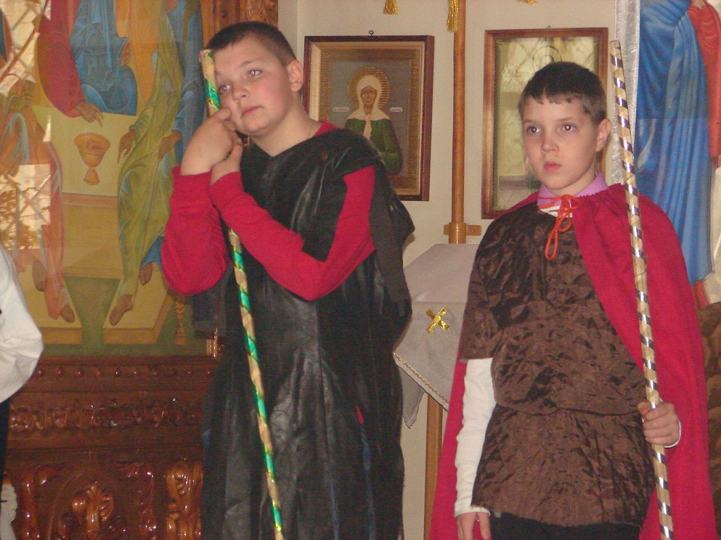 После сценки, по традиции, ребята прочитали праздничные стихи и пропели песенку. А настоятель церкви иерей Сергий Семибратов